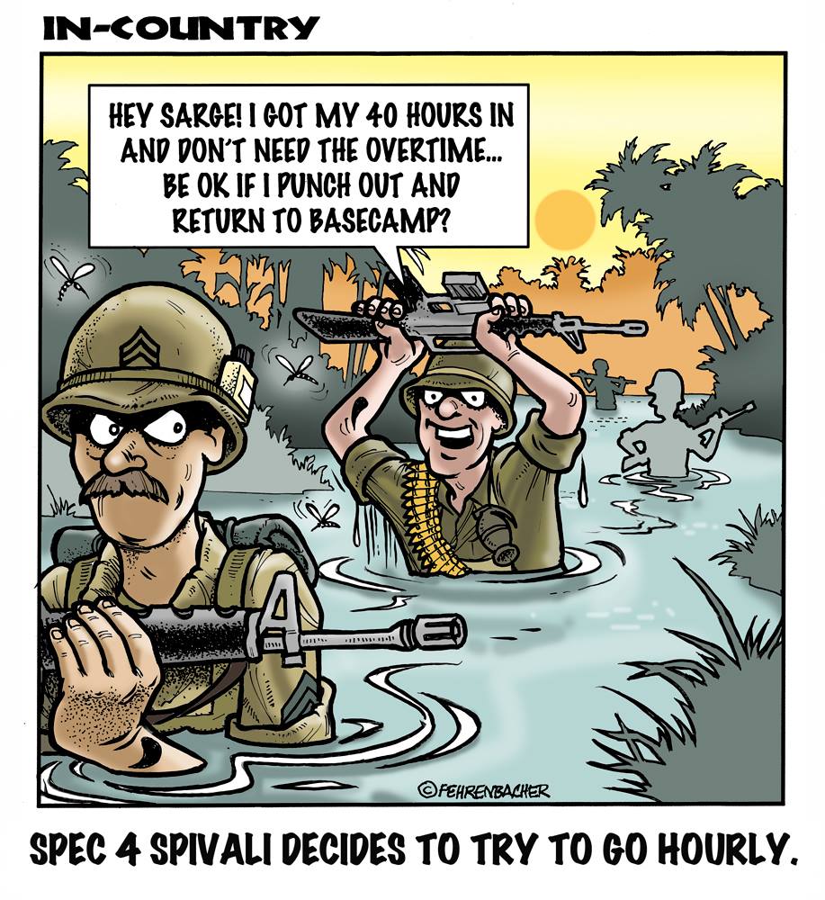 Phil enlisted in the Army in 1965 where he served for years in Vietnam. He became a graphic designer and has worked for the state of Oregon for 26 years. He retired in 2003 and started the Cartoon "In-Country". The cartoons reflect his experiences during his tour of duty in South Vietnam.