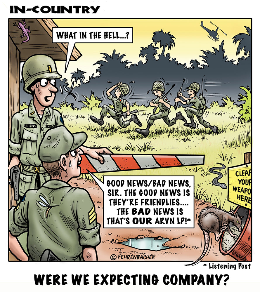 Phil enlisted in the Army in 1965 where he served for years in Vietnam. He became a graphic designer and has worked for the state of Oregon for 26 years. He retired in 2003 and started the Cartoon "In-Country". The cartoons reflect his experiences during his tour of duty in South Vietnam.