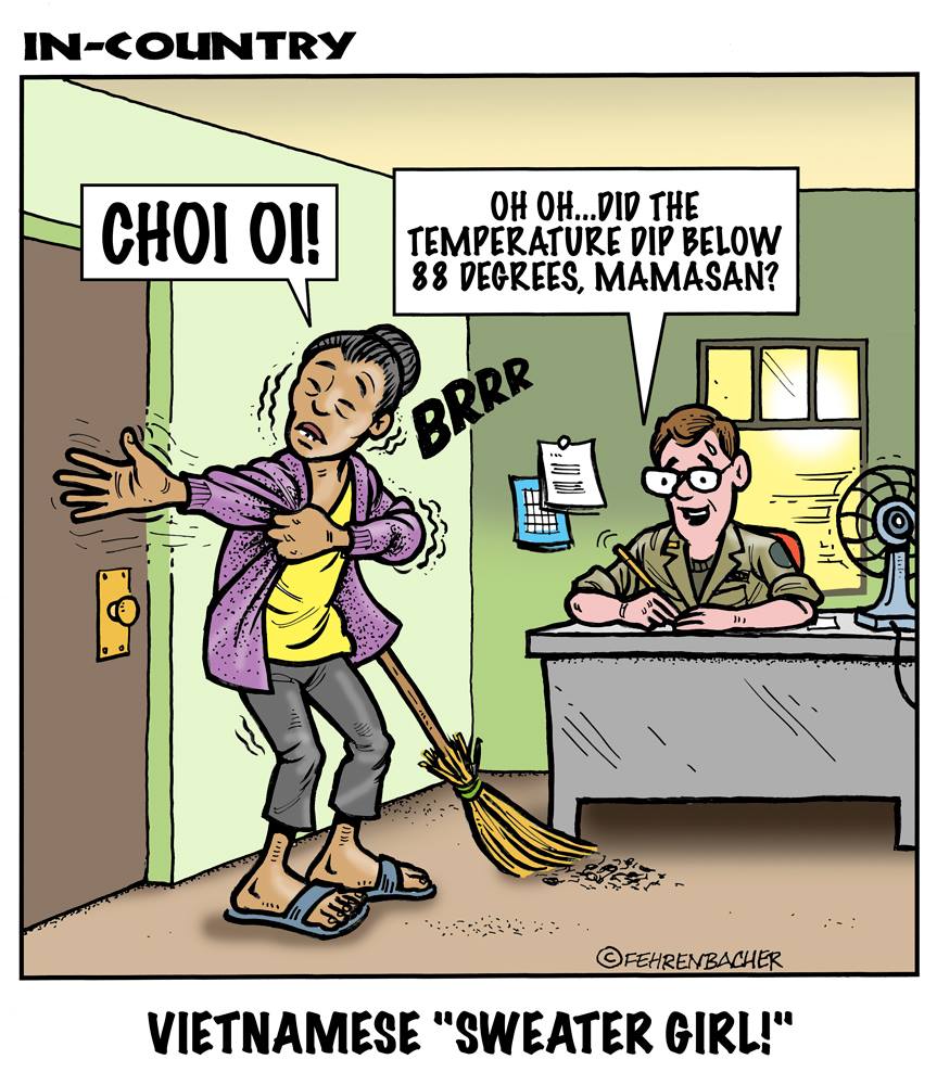 Phil enlisted in the Army in 1965 where he served for years in Vietnam.  He became a graphic designer and has worked for the state of Oregon for 26 years.  He retired in 2003 and started the Cartoon "In-Country".  The cartoons reflect his experiences during his tour of duty in South Vietnam.